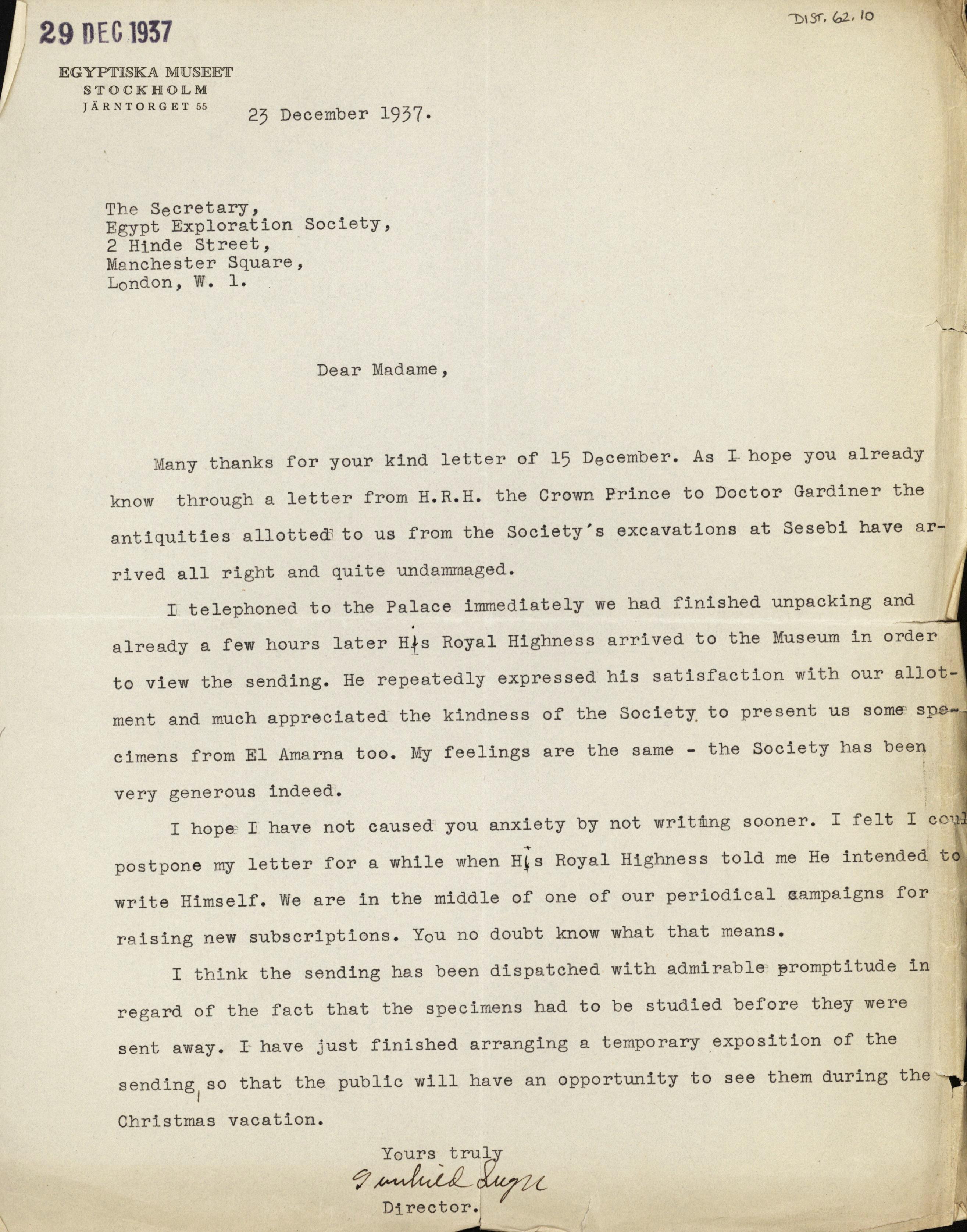 Receipt From Institution, Correspondence