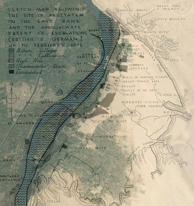 Fairman, H. W. 1935. Topographical notes on the central city, Tell el-'Amarnah. Journal of Egyptian Archaeology 21 (2), 136-139.